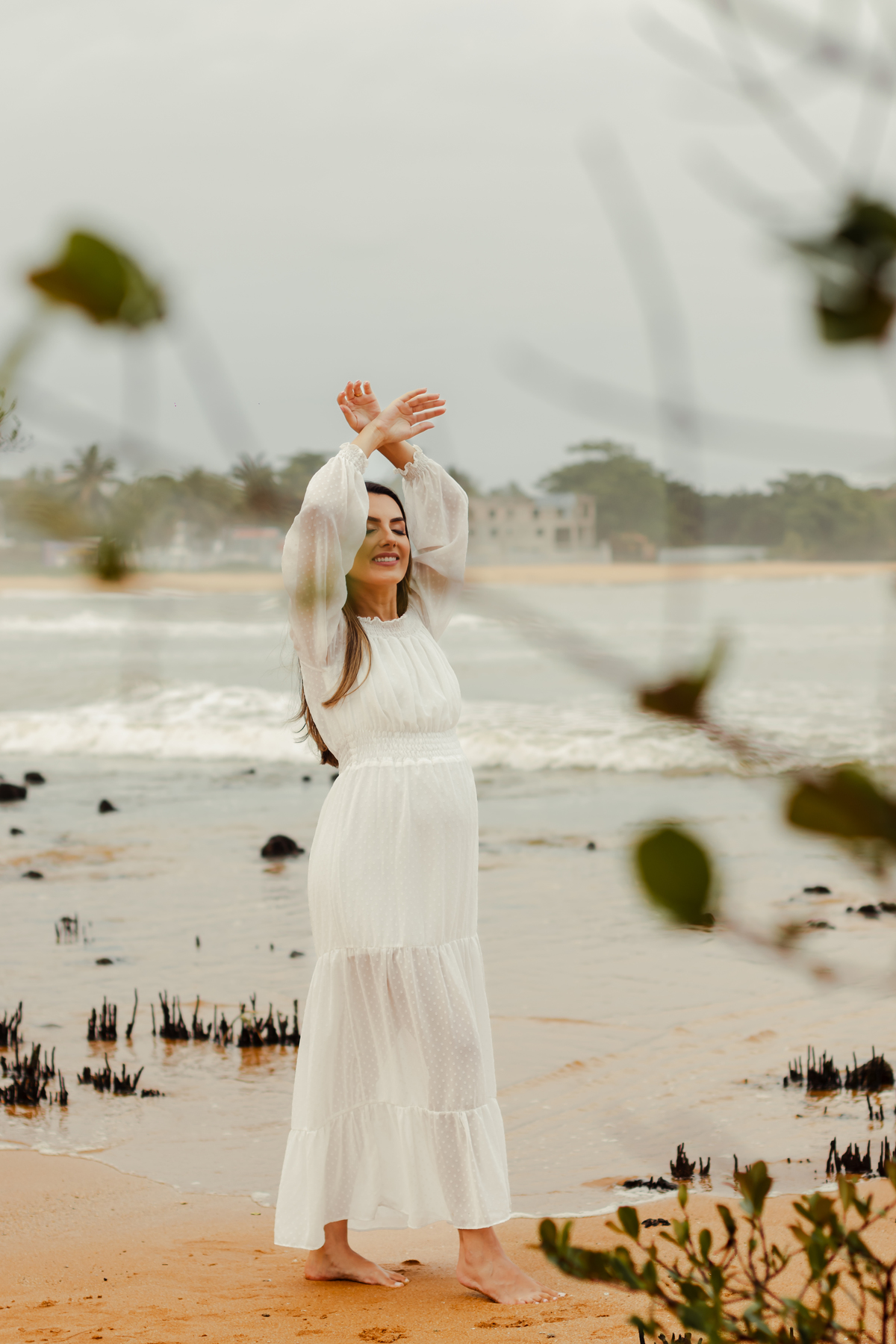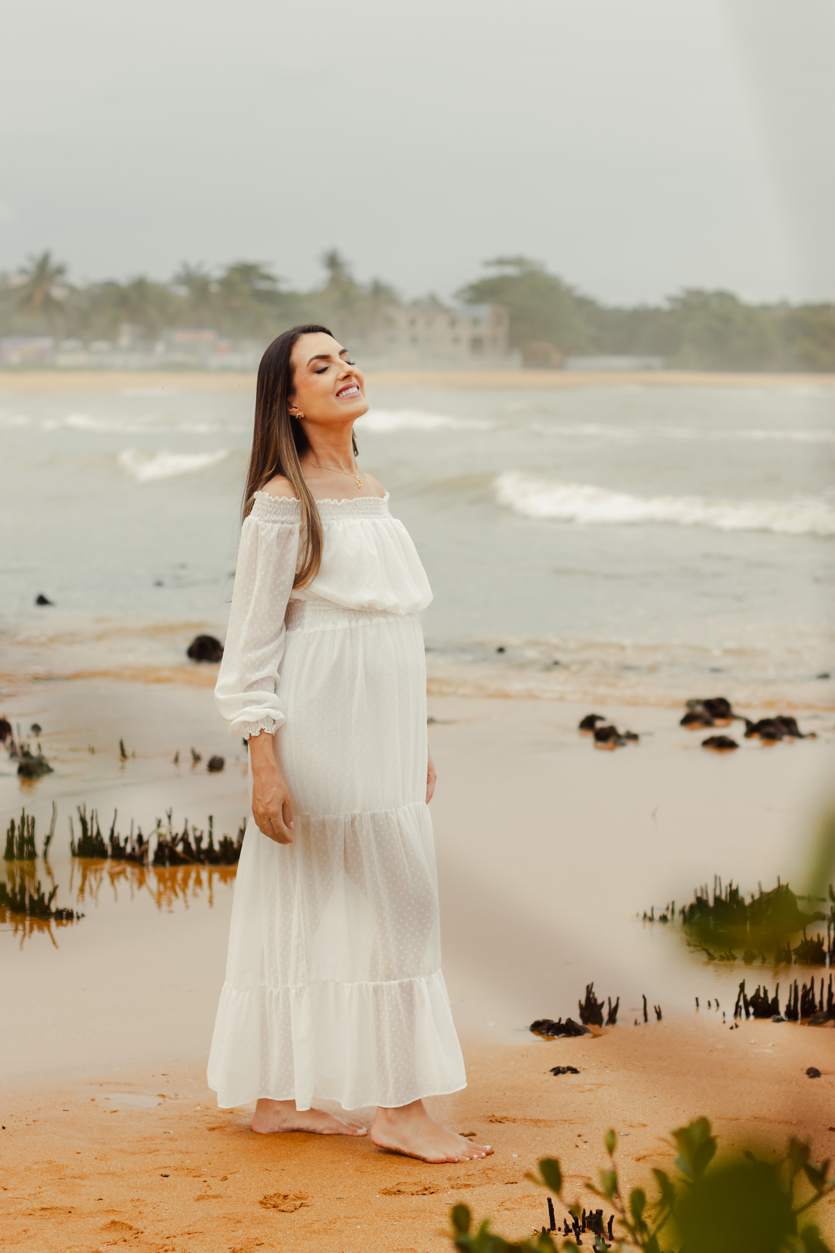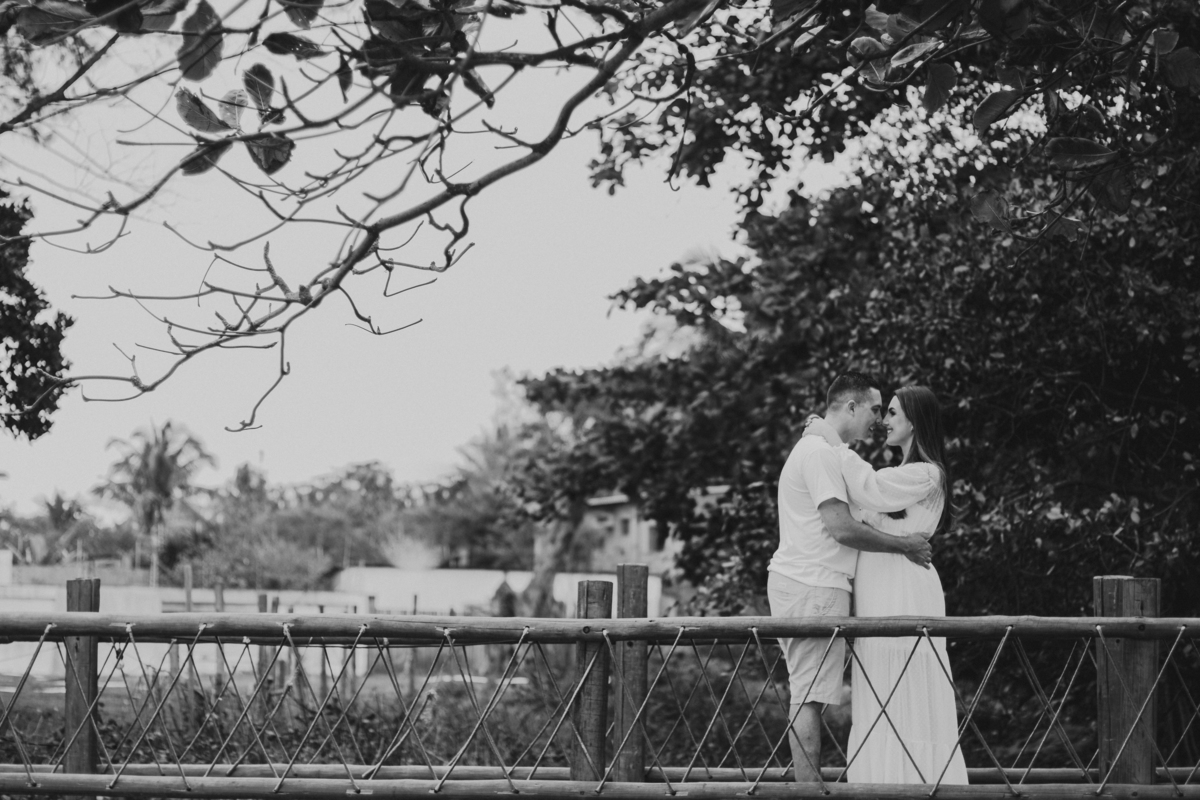 A locação escolhida foi a Praia de Manguinhos que tem um visual incrível, com uma maré mais calma, um encontro entre o rio e o mar, além de uma vegetação que traz todo um charme.